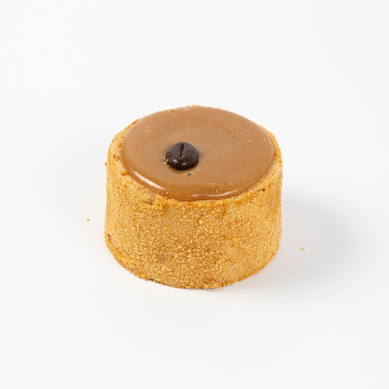 Réf. : 9889Biscuit dacquois à la noisette, enrobage à la crème au beurre café et fondant au café.